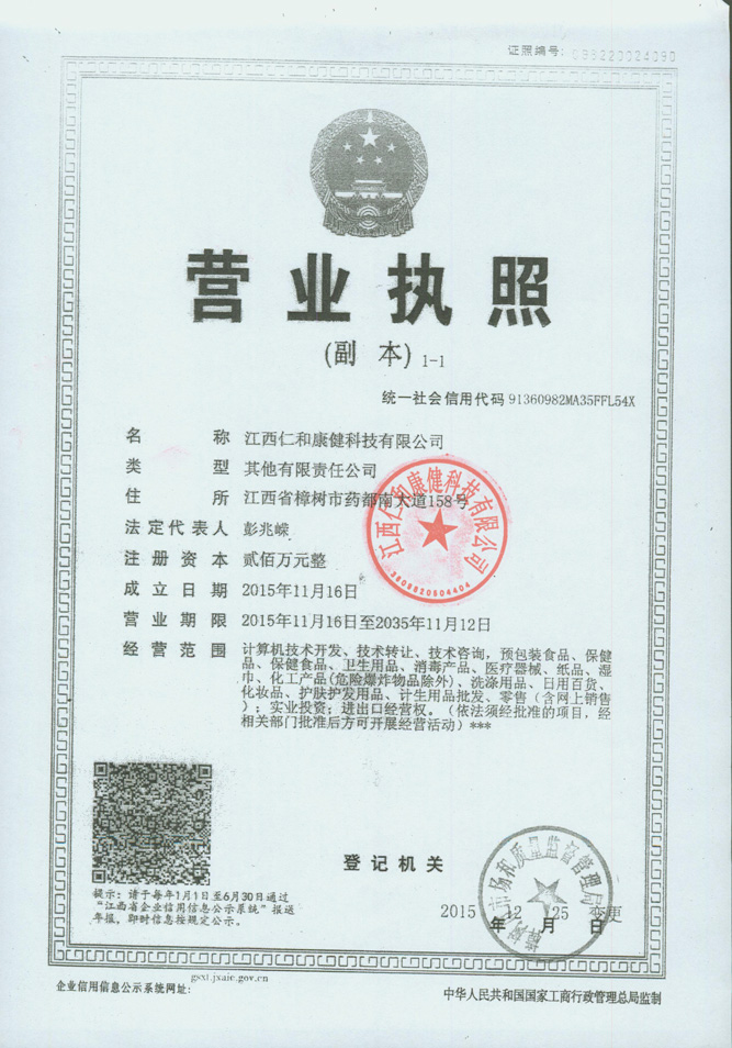 您好,歡迎光臨江西仁和康健科技有限公司官方網站,仁和康健 做大健康產業的領跑者 |